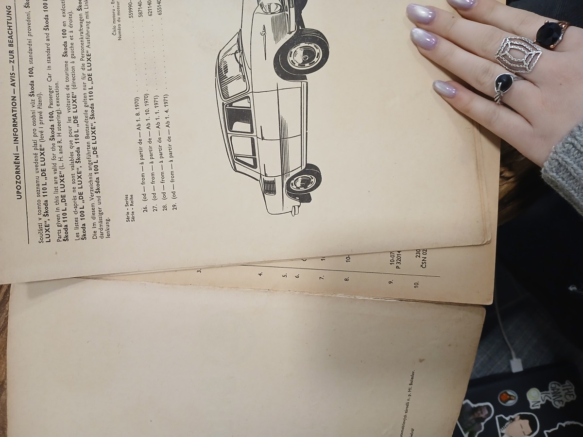Seznam náhradních dílů Škoda 100, 100L, 110L (de Luxe), 1970