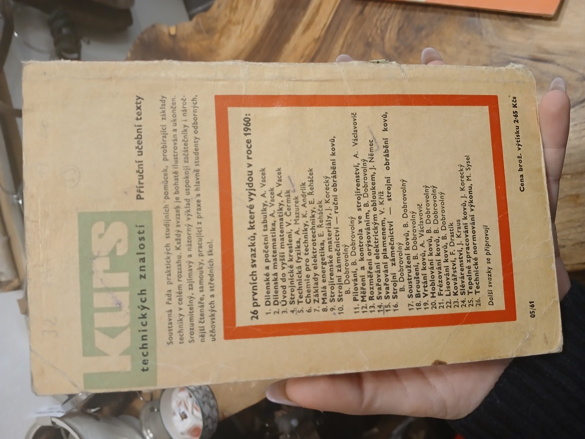 | Digitalizovaná tiráž: | Technických znalo Příruční učební texty Svazek 21 Bohumil Dobrovolný Frézování kovů DT 621.914/.917 st Publikace je určena pro učně, dělníky a studenty Vydalo Státní nakladatelství technické lite- ratury, n. p., Spálená 51, Praha 1, v lednu 1961 jako svou 3585. publikaci v řadě kniž- nice Kurs technických znalostí. Redakce strojírenské literatury. Odpovědný re- daktor František Chudárek. Obálku navrhl Metoděj Sychra. Grafická úprava a tech- nická redakce Vladislav Lacina. Vytiskl MÍR, novinářské závody, n. p., závod 1, Václavské nám. 15, Praha 1. 88 stran, 86 obrázků. Typové číslo L13-B1-3-1/2472. první. Náklad 8215 výtisků. AA 5,06, VA. 5,27. D02*01763. Vydání Nelze na z této pr všeobecn knižky. B. Dobro E. Schm F. Dráb F. Drát Základ 05/61 Cena brožovaného výtisku 2,65 Kčs 63/111-6-(B) II. vyd Zákla rensk měřen kovů Další Také určen |